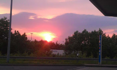Jag var så trött och hade ont i hela kroppen, jag bara skakade. Morgan fick köra och stannade sen hos sin bror. Vilket jag inte hade nån som helst lust med. Solen hade kommit tillbaka, man var så trött så man inte kunde säga ett vettigt ord, kladdig och svettig efter alla långa timmar i bilen, nä, då vill man hem och ta en ducsh!