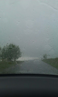 Så fort Emelie kört iväg med sin faraohund så brakade helvetet löst i form av en otrolig störtskur. På nån minut var pakeringen vid en mack vi fick stanna lite på helt översvämmad!