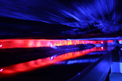Vi åkte båt över den, de spelade hög stämningsfull musik och hade ett vackert ljusspel till! Fantastiskt!