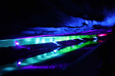 Nån slags sten de brutit i gruvan och belyste inifrån, väldigt vackert i verkligeheten.