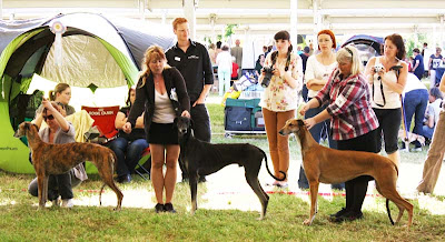 Ja, var var jag nu, vi hade gått en underbar promenad upp i bergen med Qilah och Socker, så nu skulle vi till specialutställningarna där bla Ian och Susan som har flera sloughi, bla från Ingela Näslund. De hade dessutom Xannis pappa, innan han tyvärr hann dö innan jag hann träffa honom.