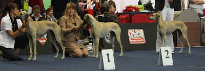 Vi kom tvåa efter en riktigt snygg tik från Slovenien. Hon såg inte så fin ut på korten tyvärr, då hon krummade med ryggen, men väldigt snygga rörelser!