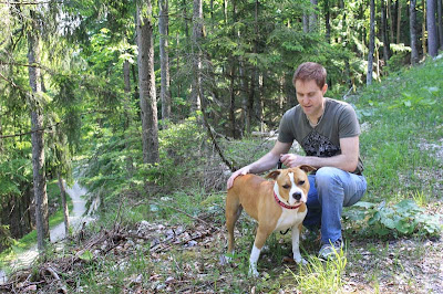 Vi åkte vidare till Jönköping där vi skulle hämta upp två hundar som Britzyk skulle ställa. En Amerikansk Staffordshire bullterrier och en dv. pinscher. Hon som ägde dem hade då väntat i nästan tre timmar!!