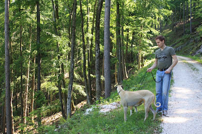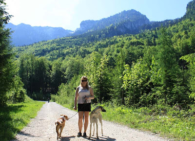 Nu visste vi ju om köer osv. Så vi kom dit lite fortare, Morgan och jag tog Qilah och Amstaffen, Socker och åkte vidare till Anif och skulle kolla på slottet. Vi stannade och käkade frukost, för det var sån kö dit med. Sen körde vi upp mot berget som låg där och hittade en underbar väg att vandra!