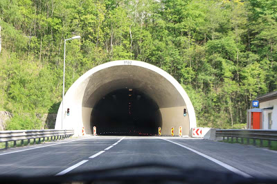 och tillslut in i dem! Vi körde väl igenom en fyra fem tunnlar, innan vi kom fram till Flachau, eller hur det stavades nu!