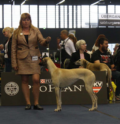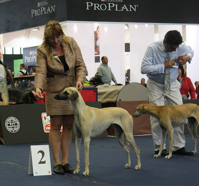 Jag var helt förstummad. Trodde jag skulle få se hur många fina vackra sloughis som helst, och att jag skulle kika ut en vacker hane till Qilah! Den vackraste hanen där var hennes kusin, från Ingela Näslund som Ian och Susan har!! Han blev oxå tvåa i sin klass!