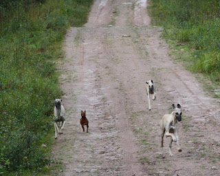 Här kom hela gänget utom Alf som inte riktigt vågar dra järnet med dem alla än! Men det blir bättre och bättre för varje promenad!