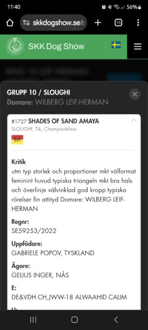 I also show Del Khazaris Kabriq to BOS and Swedish Winner 2025